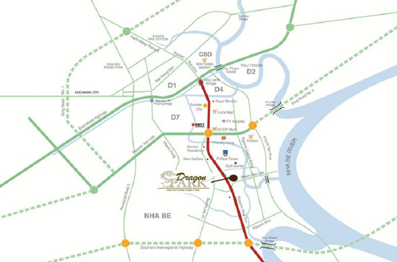 [GHI CHÚ HÌNH ẢNH: Vị trí Dragon Parc trên trục Nguyễn Hữu Thọ]