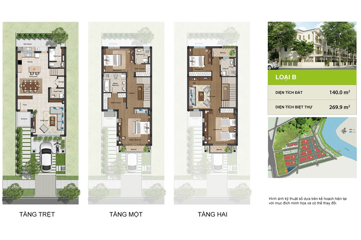 • Kết cấu: 1 trệt – 2 lầu - sàn 260m²