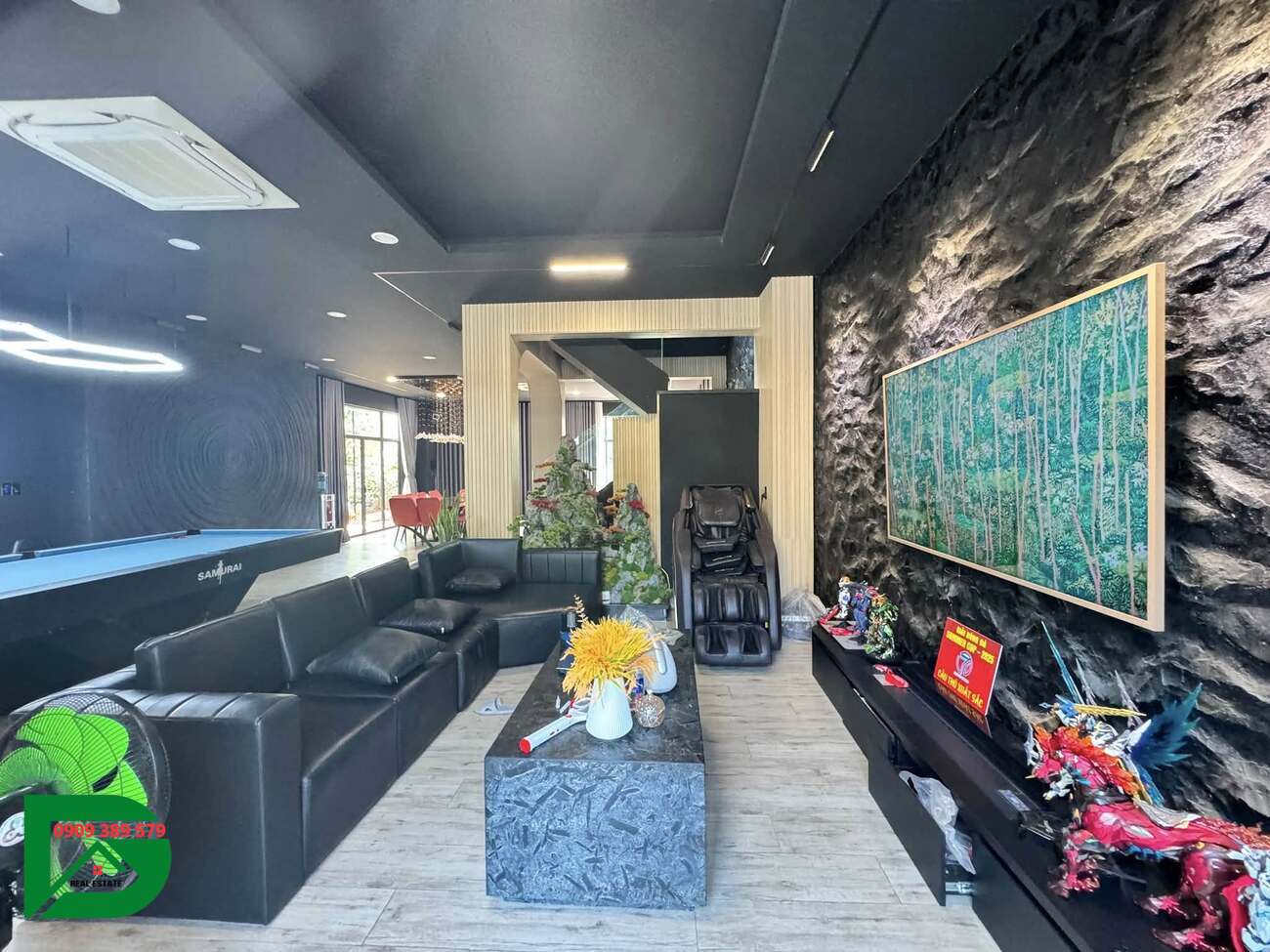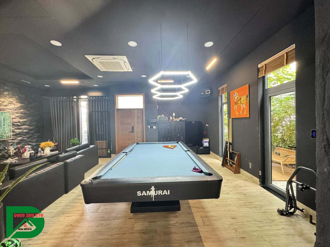 – Khu vực bida thư giãn ban công trước sau